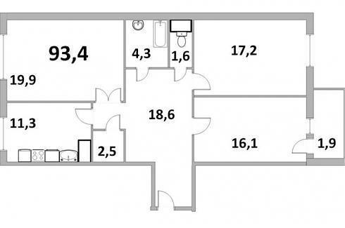 и такой трехкомнатной квартиры общей площадью 93,4 кв. м: