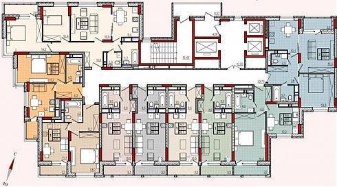 В большинстве своем площади квартир в этих корпусах относятся к эконом-классу, исключение составляют четырехкомнатные квартиры, созданные путем объединения соседних двушек. Таких квартир на каждый корпус приходится 12 и располагаются они в «высоких» секциях начиная с 13 этажа: