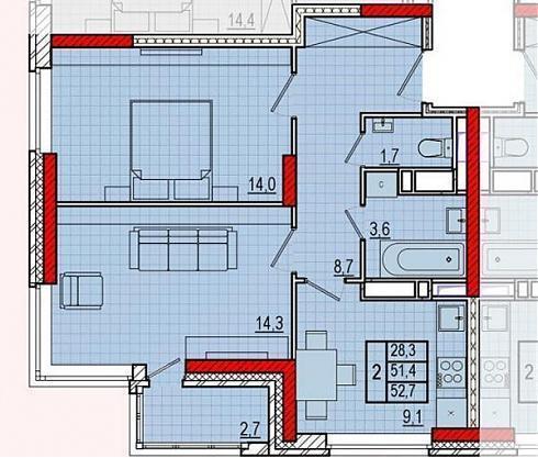 | Июль 2017 | 49,3-54 м2 | 4 100 000 - 4 533 000 ₽ | ~83 816 ₽ | |