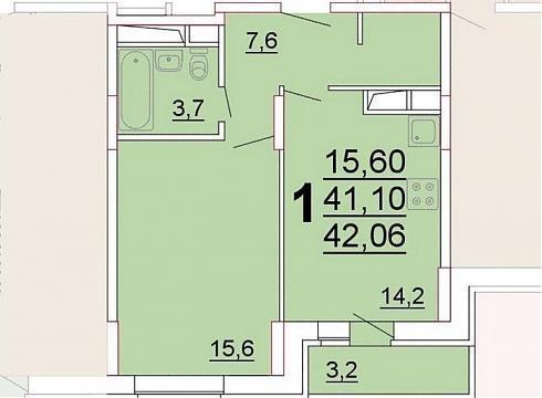 Тем покупателям, которых интересует исключительно «классические» планировки однокомнатных квартир, понравятся такие 42-метровые варианты: