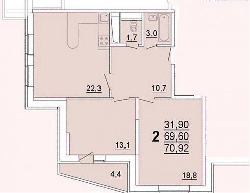 70,92 кв. м – эта двухкомнатная квартира имеет площадь, большую, чем трехкомнатные квартиры в соседних башнях: