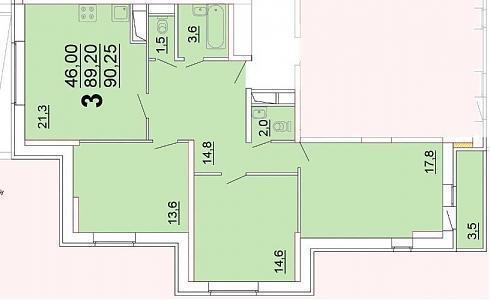 Самая что ни на есть, классическая планировка с почти квадратными комнатами обнаружится в этих 90-метровых трехкомнатных квартирах: