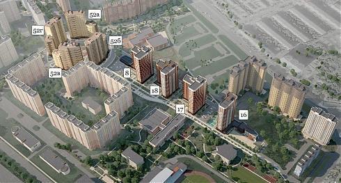 Теперь о различиях: в отношении квартирного фонда все восемь корпусов микрорайона можно условно разделить на две группы. В первую попадают односекционный 25-этажный корпус №16 и двухсекционные корпуса переменной этажности от 19 до 25 этажей под номерами 8, 17 и 18.