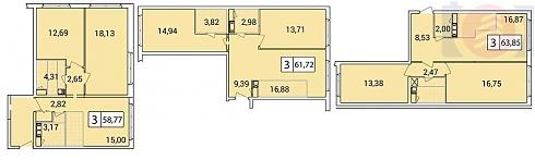 Та же классификация используется в отношении трехкомнатных квартир, хотя следует признать, что 13-17 кв. м не совсем сгодятся на роль полноценной кухни-гостиной: