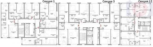 В остальных десяти секциях этого корпуса на лестничных клетках находятся по 5, по 4 и даже всего по 3 квартиры: