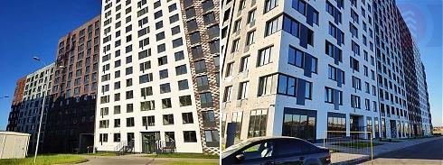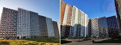 Первые два корпуса действительно получили переменную этажность, строились по монолитно-каркасной технологии и имели вентилируемые фасады, облицованные клинкерной плиткой, керамогранитными и фиброцементными плитами.