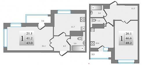 | Июнь 2018 | 43-48,2 м2 | 3 870 000 - 4 338 000 ₽ | ~90 198 ₽ | |