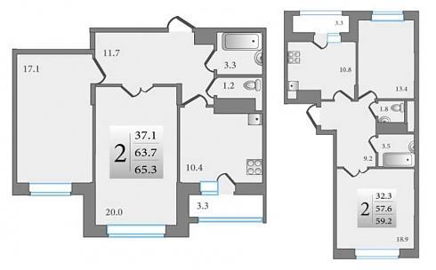 | Ноябрь 2017 | 59,2-65,3 м2 | 4 795 000 - 4 972 000 ₽ | ~78 766 ₽ | |