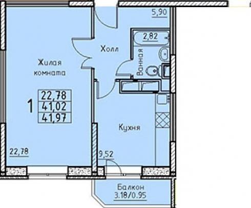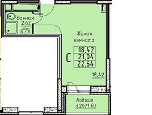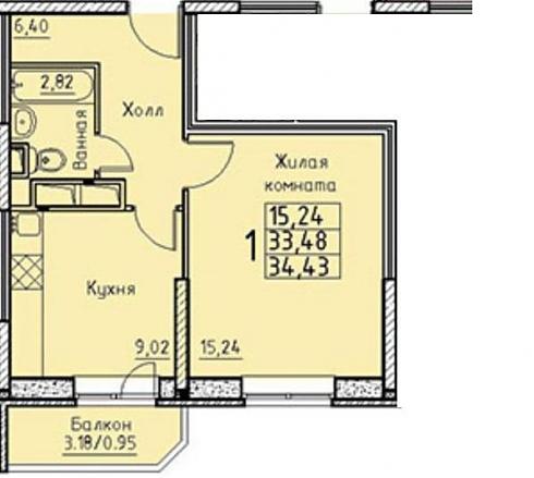 и небольшие однокомнатные квартиры площадью 34,43 кв. м.