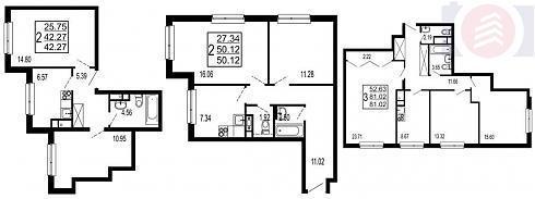 | Ноябрь 2019 | 42,27-55,35 м2 | 2 883 978 - 3 945 340 ₽ | ~70 405 ₽ | |