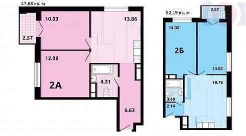А вот концепция планировок двухкомнатных квартир была несколько изменена – на смену классике пришли квартиры со столь же ужатыми метражами, но с явными намеками на их европейскую сущность. С определенной натяжкой эти варианты можно рассматривать как некое подобие евро-трешек с приятным бонусом в виде балконов: