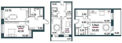| Май 2019 | 42,3-53,4 м2 | 3 807 900 - 4 960 330 ₽ | ~92 297 ₽ | |
