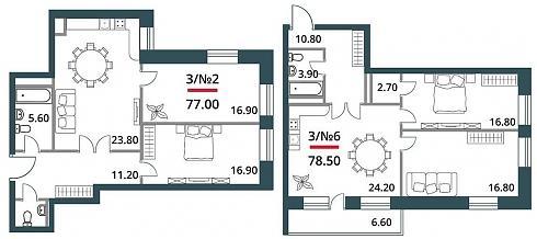 | Май 2019 | 77-78,5 м2 | 6 993 280 - 7 258 830 ₽ | ~91 949 ₽ | |