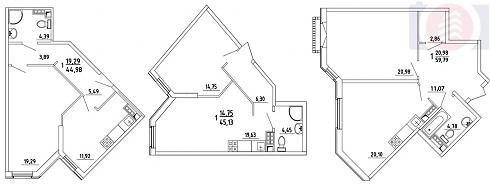 | Январь 2017 | 44-70,5 м2 | 3 688 000 - 6 630 000 ₽ | ~90 509 ₽ | |