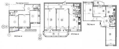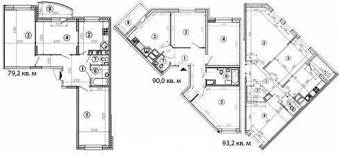 Трехкомнатные «евро-варианты» в корпусах 14 и 15 имеют 25-метровый разброс площадей:
