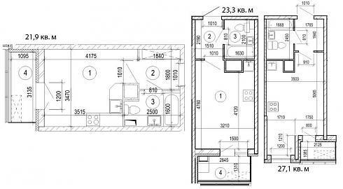 Здесь уже в огромном количестве представлены студии площадью от 22 до 27 кв. м: