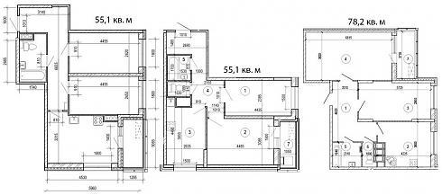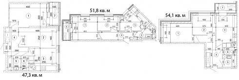 Классические трехкомнатные распашонки общей площадью от 75 до 100 кв.м, мирно уживаются с весьма оригинальными вариантами трехкомнатных квартир, также обладающими серьезными метражами:
