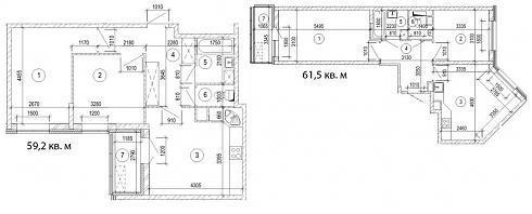 В корпусах №14, №15, №16 представлены распашные двухкомнатные квартиры самого разного метража:
