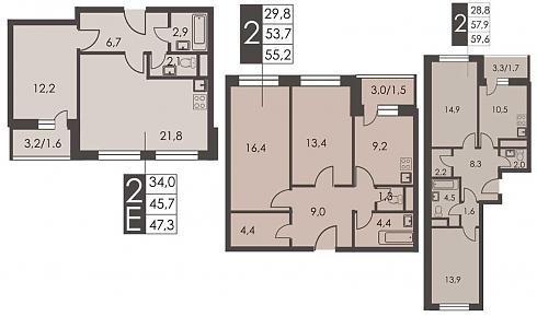 | Февраль 2022 | 29,9-52,3 м2 | 4 155 987 - 6 791 956 ₽ | ~135 160 ₽ | 33.73% |