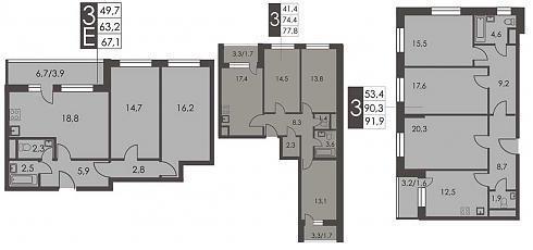 | Декабрь 2018 | 65,6-91,9 м2 | 6 081 463 - 9 208 920 ₽ | ~98 015 ₽ | 12.47% |