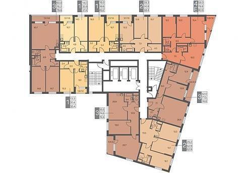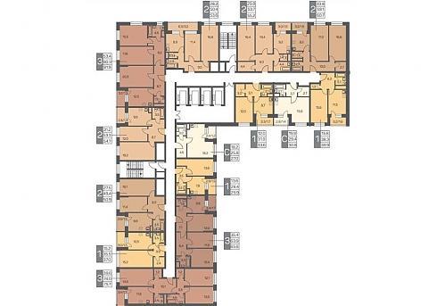 Меньше всего соседей будет у квартир, расположенных в 25-этажной секции №2, правда, при этом 5-6 квартир на этаже обслуживаются уже тремя лифтами: