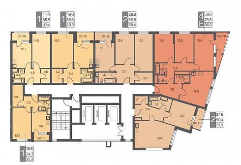 | Июнь 2018 | 50,9-79,8 м2 | 4 610 910 - 7 001 540 ₽ | ~90 019 ₽ |