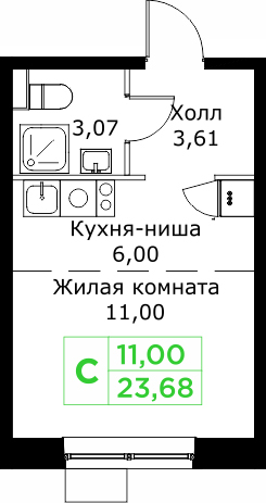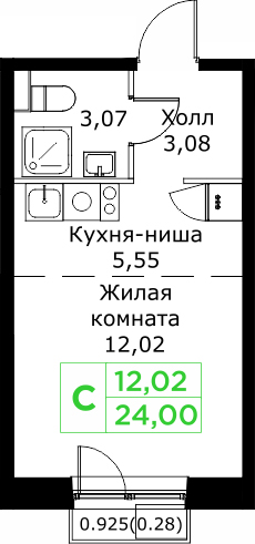 | Ноябрь 2022 | 24-29 м2 | 6 200 000 - 7 700 000 ₽ | ~262 264 ₽ | -5.51% |