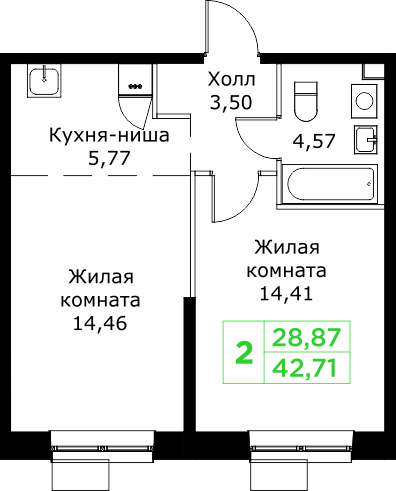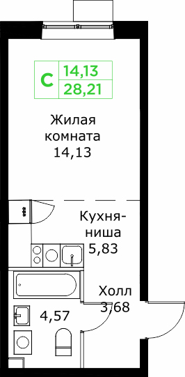 | Сентябрь 2023 | 26-29,2 м2 | 4 600 000 - 8 800 000 ₽ | ~243 636 ₽ | -2.73% |