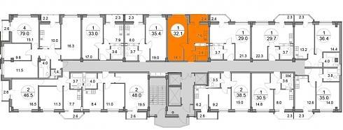 Средний метраж однокомнатных предложений составляет 32,1 кв. м. Нахождение на лестничной клетке 10-12 квартир при двух лифтах может стать проблемой в часы-пик.