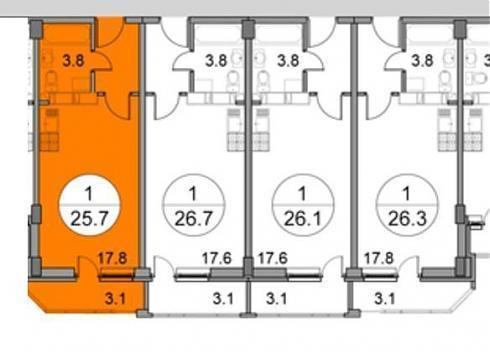 | Июнь 2017 | 25,7-29,7 м2 | 1 297 850 - 2 195 300 ₽ | ~64 688 ₽ | 5.01% |