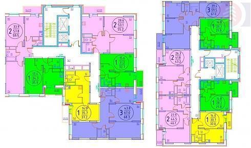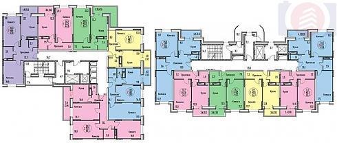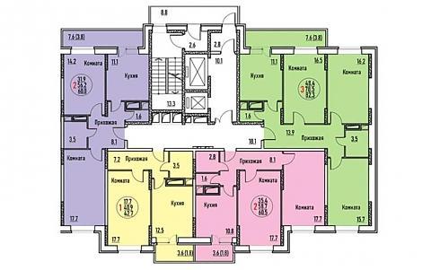 Во второй с третьей секциях на этаже расположено по 4 квартиры,