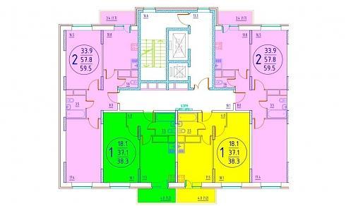 Самой комфортной будет первая секция с ее 4 квартирами на лестничной клетке: