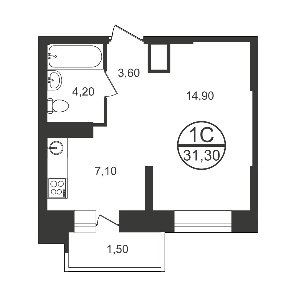 30-метровые студии не нуждаются в особом представлении, с планировкой и функционалом здесь все обстоит на должном уровне: