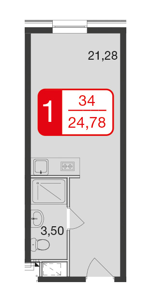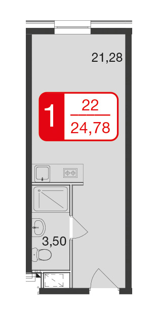 | Март 2022 | 24.78-24.78 м2 | 4 485 180 - 4 485 180 ₽ | ~181 000 ₽ | 0.56% |