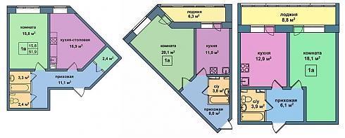Более спокойные варианты евро-планировок можно найти в корпусах любой очереди строительства: