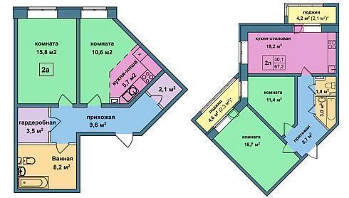 В корпусах первой очереди строительства периодически встречались двухкомнатные квартиры с весьма оригинальными планировками: