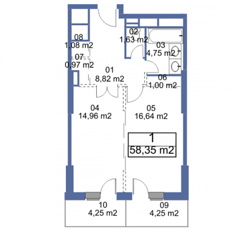 Будут стоять входная металлическая дверь и радиаторы отопления, до внутриквартирного щитка доводится не только электричество, но и ТВ и телефония. Лоджии, присутствующие не во всех квартирах Комплекса, остекляются алюминиевым профилем с одинарным стеклом.
