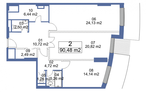 Маловато будет? Не проблема – здесь есть и 90-метровые двухкомнатные квартиры:
