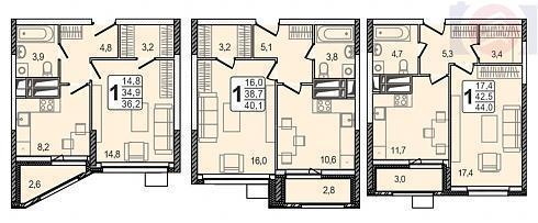 | Ноябрь 2019 | 36,2-44 м2 | 4 400 000 - 6 000 000 ₽ | ~130 000 ₽ | |