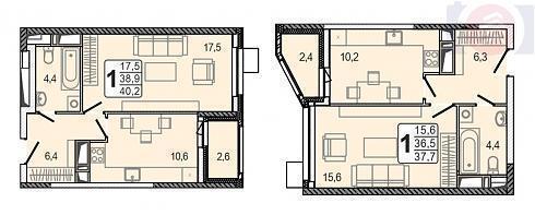 Однокомнатные квартиры, помимо разницы в размере площади, отличаются конфигурацией лоджии и прихожей: в первом случае она находится между санузлом и гардеробной, дверь в которую может вести, в том числе и из жилой комнаты,