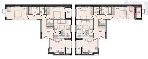 Выбор трехкомнатных квартир в комплексе донельзя прост: достаточно определиться с тем, какая из спален получит свою именную лоджию: