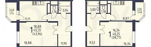 | Ноябрь 2018 | 40,25-45,7 м2 | 2 576 000 - 2 833 400 ₽ | ~63 640 ₽ | |