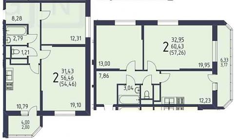 | Февраль 2019 | 56-60 м2 | 3 218 220 - 3 444 510 ₽ | ~57 437 ₽ | |