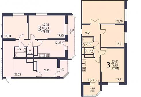 | Июль 2017 | 79,01-83,23 м2 | 5 135 650 - 5 409 950 ₽ | ~65 096 ₽ | |