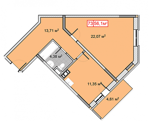 Возможно, в 56-метровой однокомнатной квартире многовато места выделено под коридор, а форма 22-метровой гостиной понравится не всем, но площадь все равно останется впечатляющей: