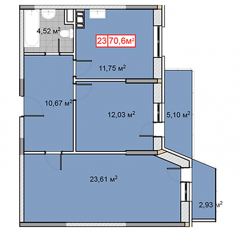 70 кв. м в этой «линейной» двухкомнатной квартире распределены следующим образом: