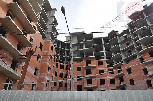 08.07.2014 года Компания получила разрешение на строительство, подразумевавшее начало строительно-монтажных работ в августе 2014 года. В проектной декларации от 14.07.2014 года говорилось о том, что срок получения разрешения на ввод в эксплуатацию первого из трех запланированных в Комплексе корпусов предполагается во втором квартале 2016 года. Но после первой декларации появилась вторая, третья и т.д. В редакции проектной декларации от 24.4.2017 года, прошедшей четырнадцать «!!!» изменений, окончание строительства приходилось уже на IV квартал 2017 года. С самого начала работа на стройплощадке то оживлялась, то замирала, впадая в состояние близкое к заморозке (может быть, Застройщику стоит поменять свое название?). В начале 2017 года здесь снова было замечено движение, в апреле первый корпус выглядел таким образом: