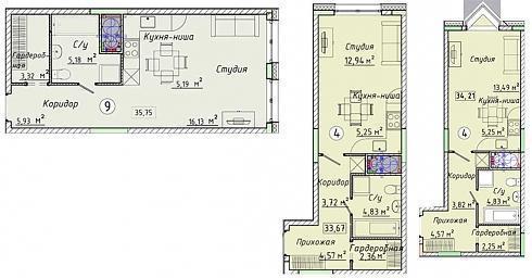 | Ноябрь 2018 | 32,88-35,75 м2 | 2 160 000 - 2 430 000 ₽ | ~68 507 ₽ | |