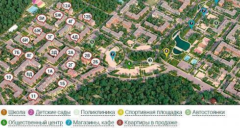 Всего этих кварталов здесь должно быть 31, большинство их состоит из двух, трех или четырех корпусов с разным количеством секций и разной этажностью (от 3 до 5 этажей, но с лифтами OTIS в подъездах), расположенных таким образом, что каждый квартал имеет свой внутренний двор. К тому же внутри ЖК сохранились зеленые насаждения и небольшой пруд, территория отделилась от окружающего мира ограждением – в общем, соответствующая атмосфера прилагается.