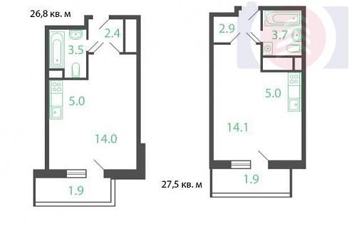 | Апрель 2019 | 26,8-28 м2 | 2 884 000 - 3 508 050 ₽ | ~118 371 ₽ | |